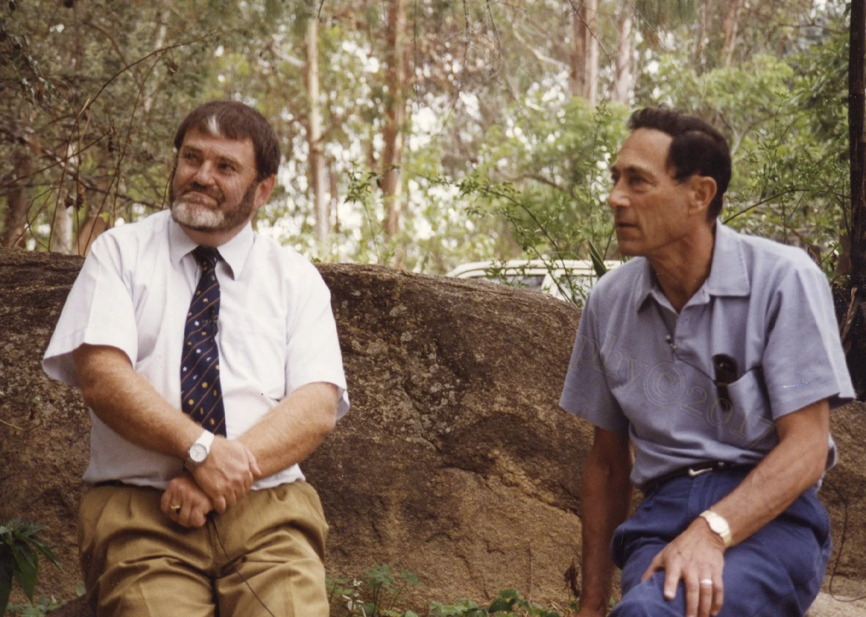 (Seen in above photo, Dr. Mack at right, and Ariel School Headmaster Colin Mackie at left)