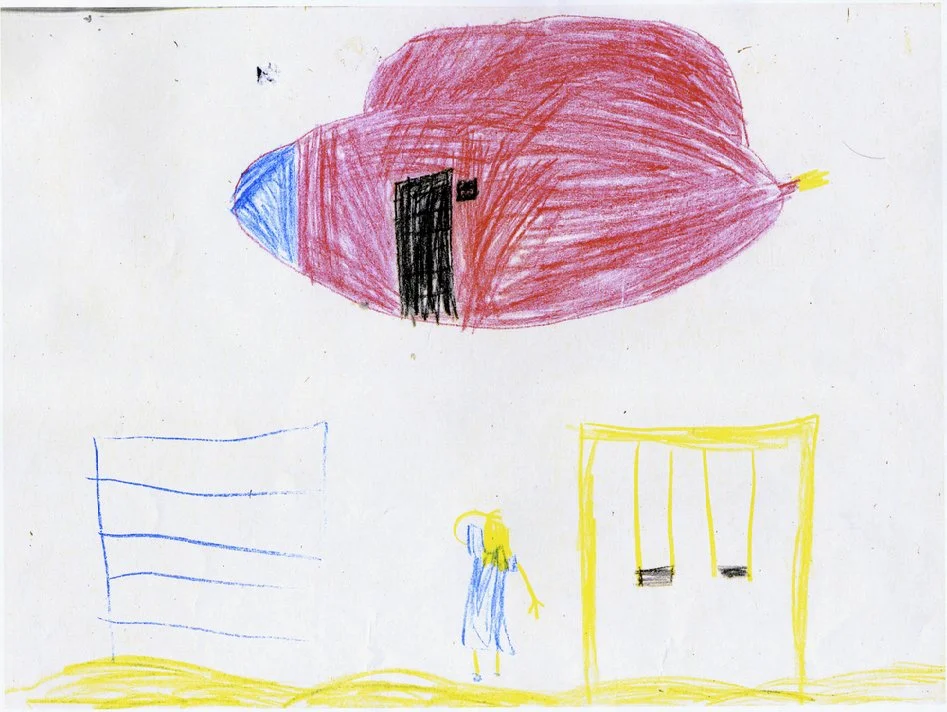 (Seen in above photo, an original drawing by one of the Ariel schoolchildren from 1994)