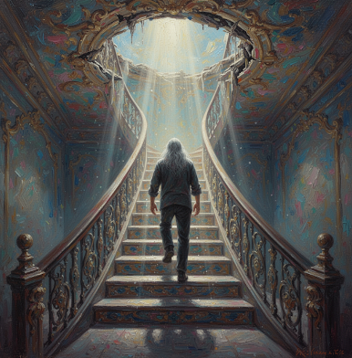 Then a door opened in the ceiling, and a staircase came down, and light shone through, and a man said, “Earl, I need to talk to you in this room.” And I said, “That’s not a room, that’s a hole in the ceiling!” And Earl smiled and walked up the stair case, and the man closed the door, the room returned to darkness and Earl was gone… again.
