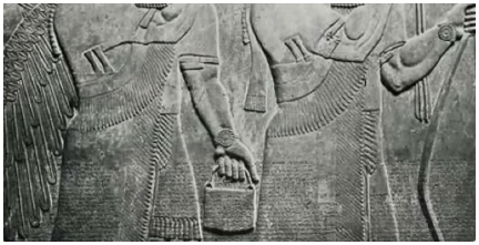 Many people would like you to believe that nobody knows what these little Assyrian demigods are holding in their hands, but Assyriologists who are actually educated and study the topic are not confused in the least. They are carrying something called a “dalu” or dalum, which means “bucket,” like the kind you use to draw water.