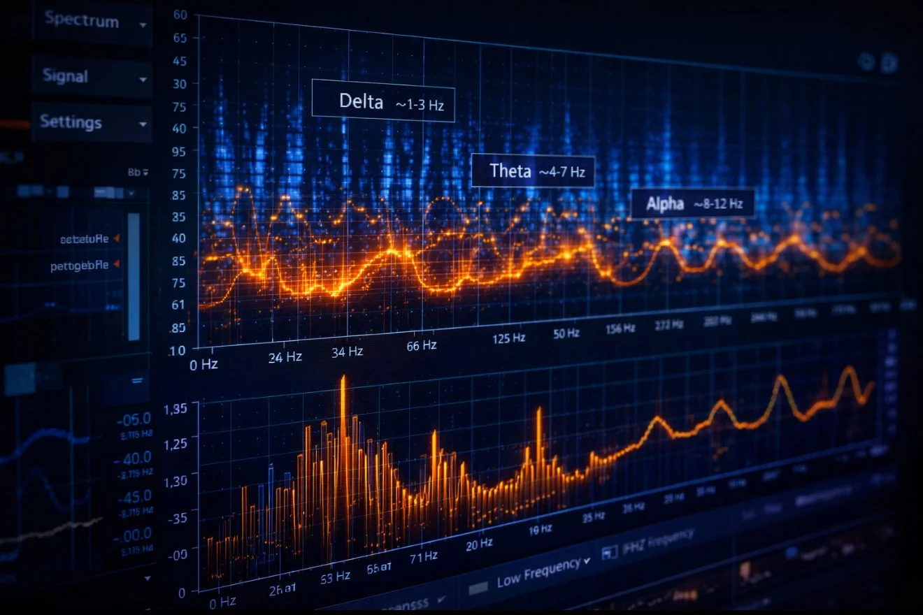 The human brain operates through oscillatory activity that can be measured in precise frequency bands. Delta rhythms occur between roughly 1-3 Hz. Theta occupies approximately 4-7 Hz. Alpha spans 8-12 Hz. Gamma oscillations extend into the 30-100 Hz range. These are not abstract concepts. Scientists record them, map them, and even manipulate them in clinical and research settings.